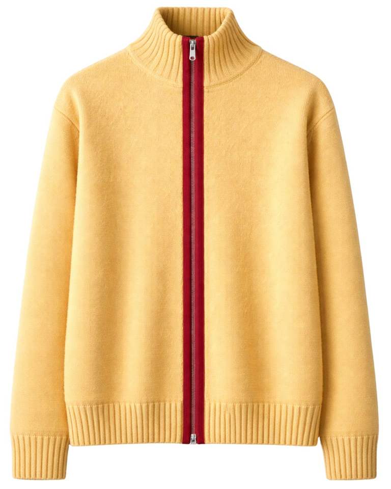 Mens Premium Ribbed Knit Zip Up Sweater Jacket Yellow High Neck Winter Cardigan Full Zipper OEM Wholesale Supplier Factory Extra