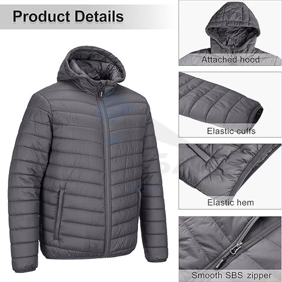 Mens Puffer Jacket Hood Lightweight Packable Winter Coat Featuring Water Resistant Fabric Zipper Garage Bulk Custom Branding