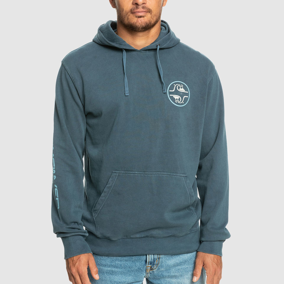 Mens Pullover Hoodie Navy Blue Large Chest Logo Graphic Print Drawstring Hood Kangaroo Pocket Casual Streetwear Outerwear