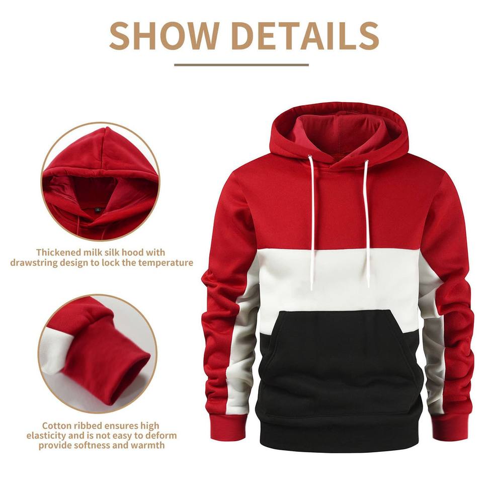 Mens Pullover Hoodie Sweatshirt Drawstring Hooded Color Block Hoodie Mens With Pocket