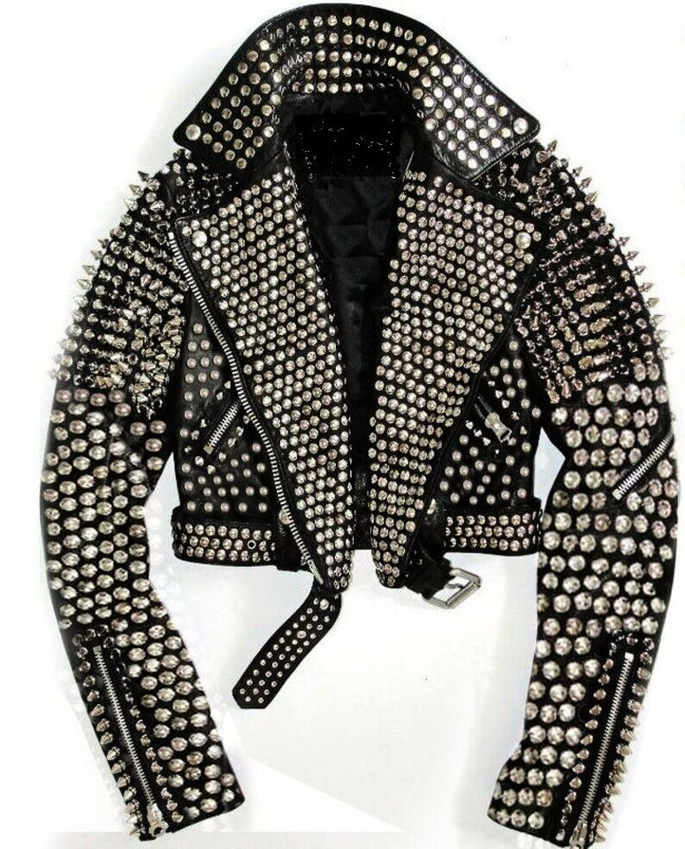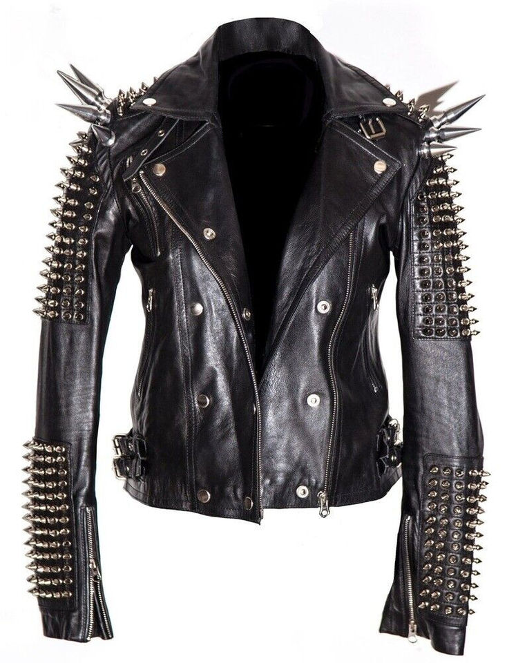 Mens Punk Rock Studded Leather Jacket With Spikes Heavy Metal Biker Style Slim Fit Zipper Closure Fashion Outerwear