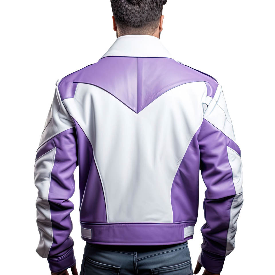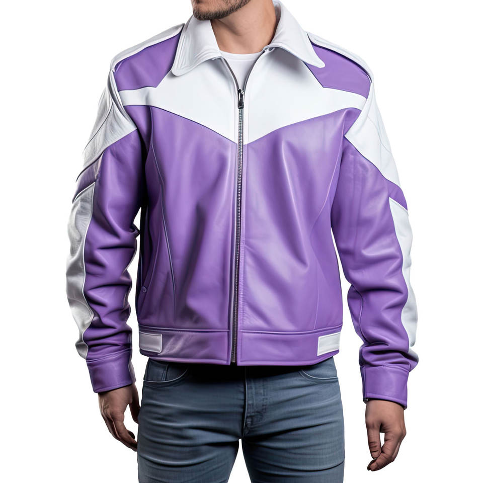 Mens Purple White Genuine Sheepskin Shirt Collar Zip-Up Winterwear Soft Fashionable Moto Biker Leather Jacket