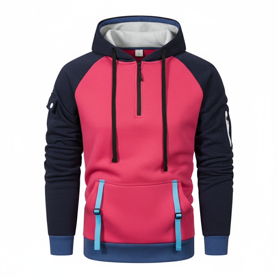 Mens Quarter Zip Hoodie Customize Color Block Patchwork Hooded Sweatshirt Outdoor Casual Streetwear Private Label Sports Hoodies