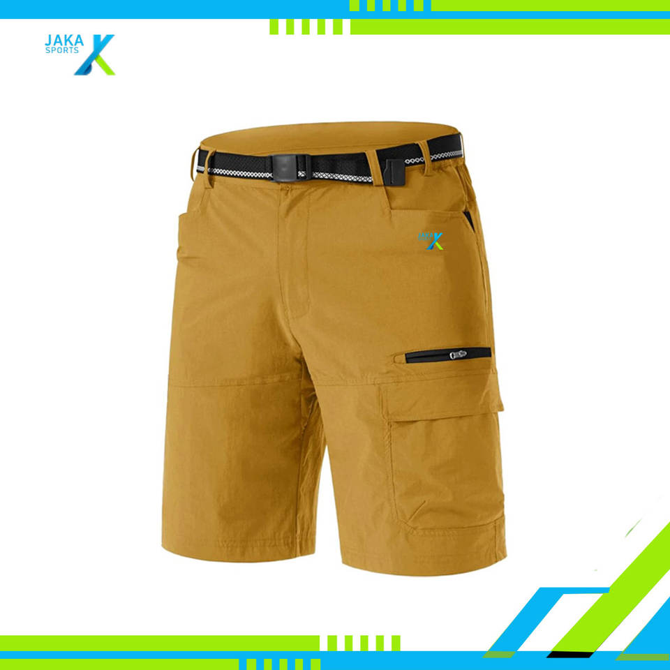 Mens Quick Dry Outdoor Cargo Shorts Lightweight Casual Work Hiking Elastic Waist Knitted Breathable Multi Pocket Summer No Belt