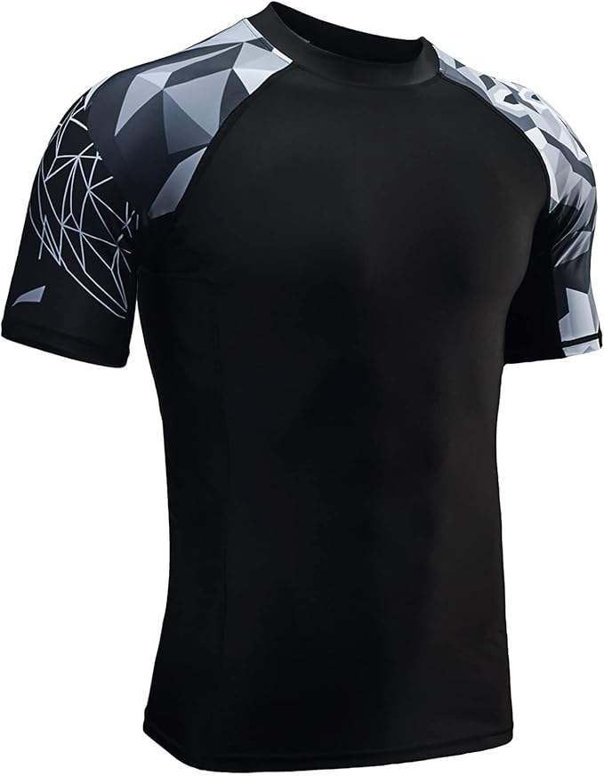 Mens Rash Vest- Rash Guard Short Sleeve Quick Drying Wetsuit Swimming Tops for Surfing BJJ Jiu Jitsu