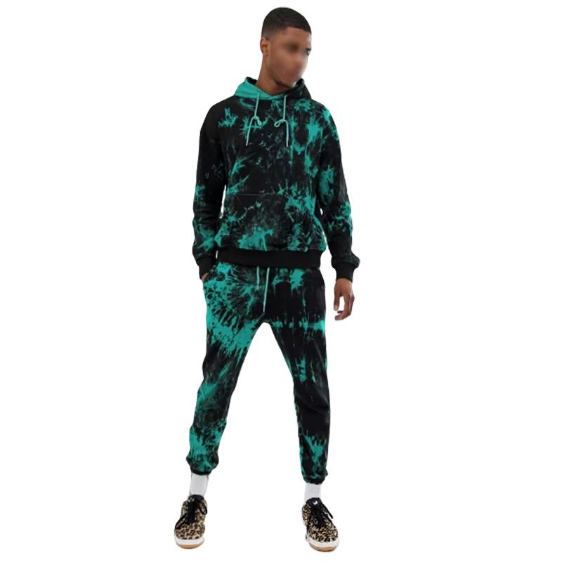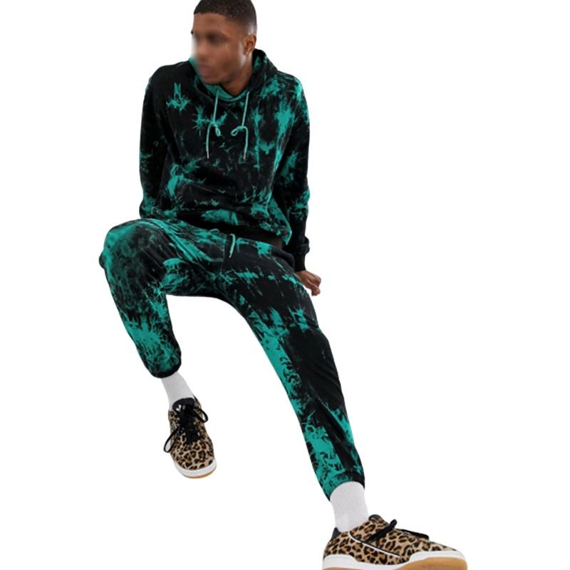 Mens Red and Black Tie Dye Polyester/Cotton Eco-Friendly Hoodie and Joggers with Rhinestone Detailing Custom Tracksuit