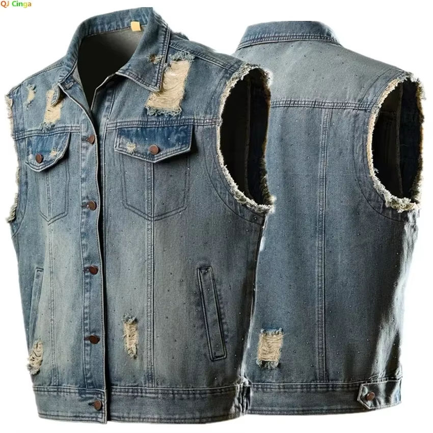 Product name:Mens Retro Distressed Denim Vest | Loose Fit Sleeveless Jean Vest