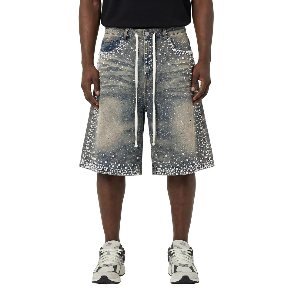 Mens Corduroy Denim Jorts Baggy Elastic Waist Solid Vintage Washed Streetwear Jean Shorts OEM
