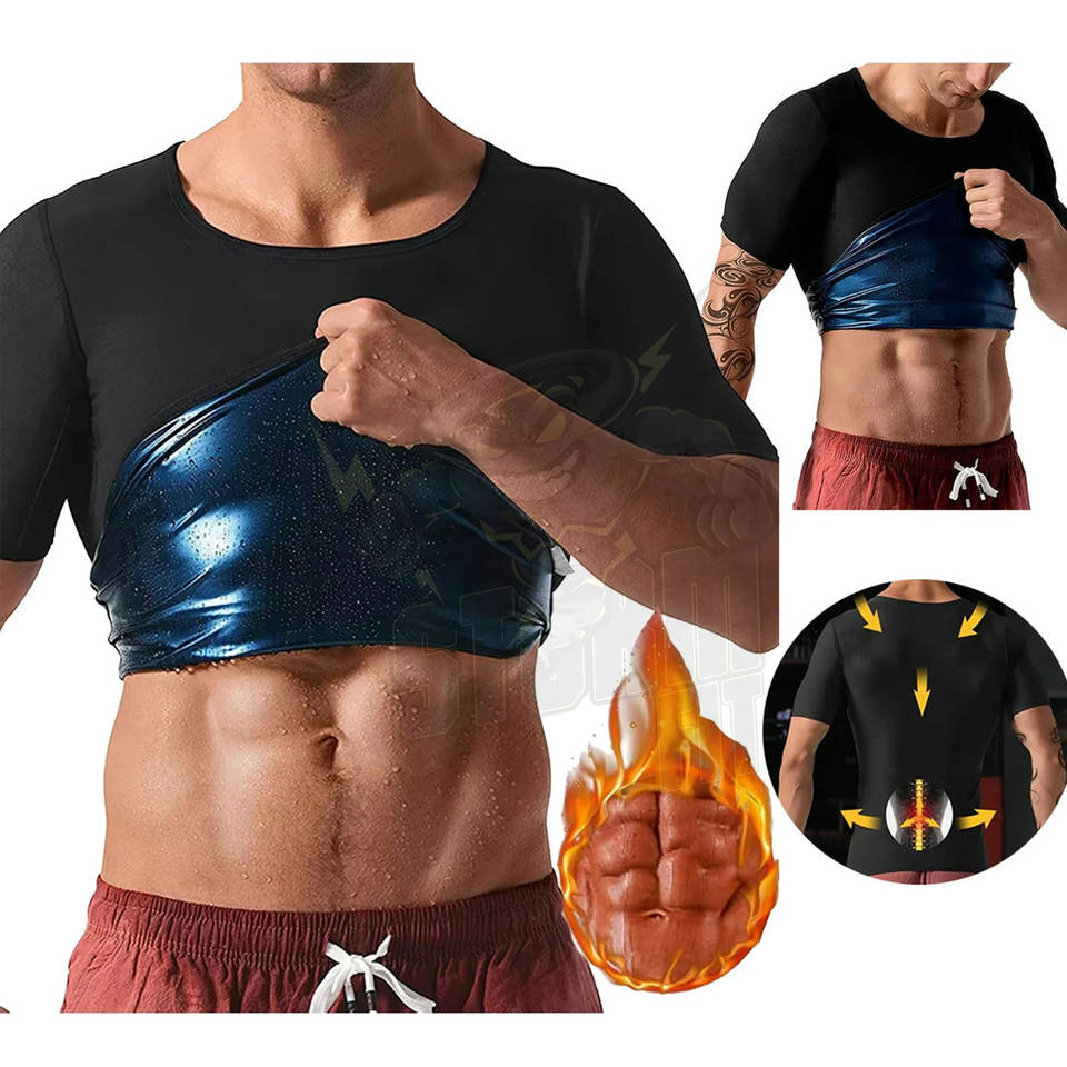 Mens Sauna Sweat Shirt Hot Polymer Corset Compression Waist Trainer Shirt jogging wear Workout Tank Top Weight Loss Body Shaper