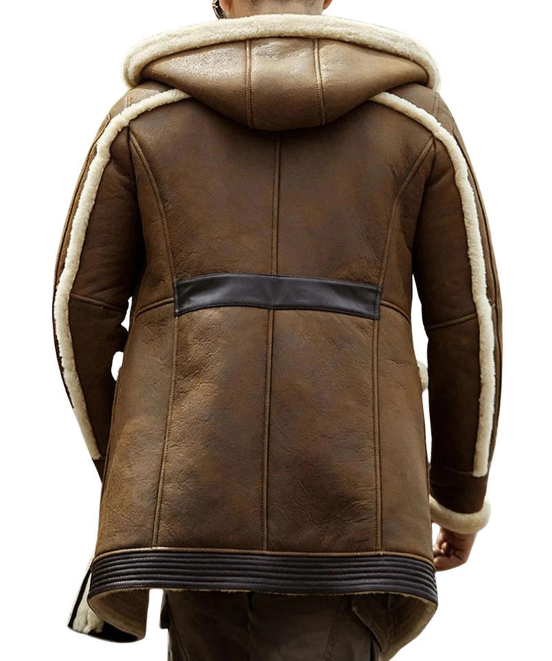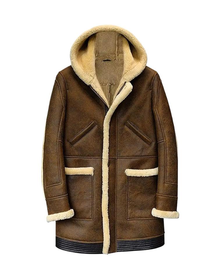 Mens Shearling Hooded Coat Real Genuine Leather Ternch Mid Length Sherpa Fur Warm filling Winter Rancher Coat Jacket Wholesale
