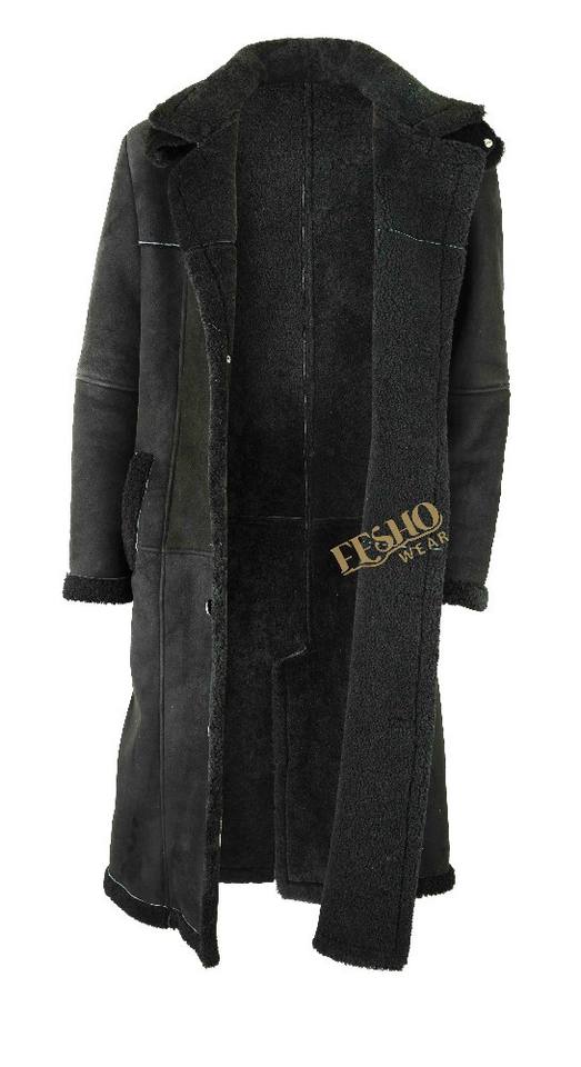 Men Long Coat with Hood:Made from Genuine Sheep shearling leather