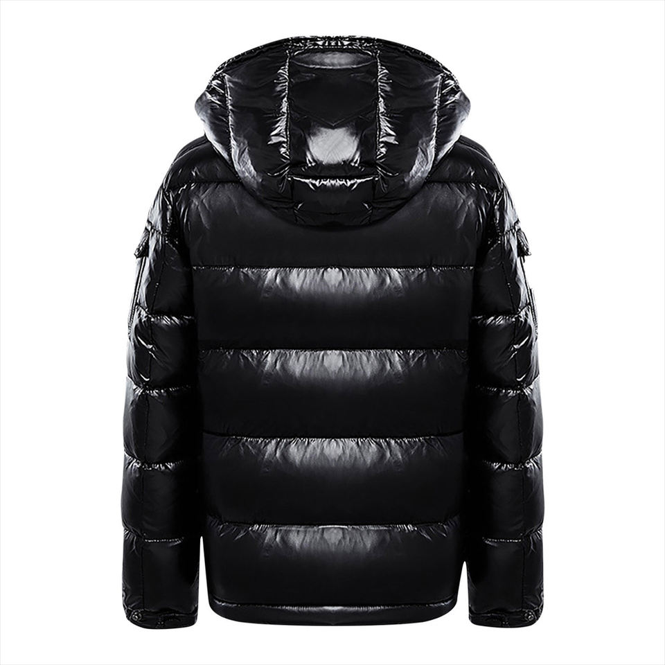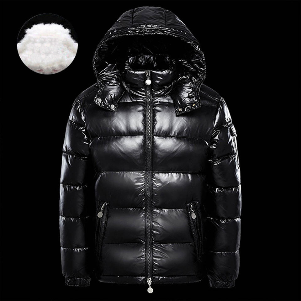 Mens Shiny Black Winter Puffer Jacket Thick Warm Coat Hooded Outerwear Lightweight Windproof Snowproof Insulated Zip Up Casual