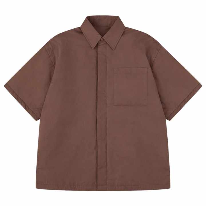 Mens Short Sleeve Padded Shirt Modern Boxy Fit Casual Streetwear Lightweight Summer Overshirt Solid Color Fashion Top