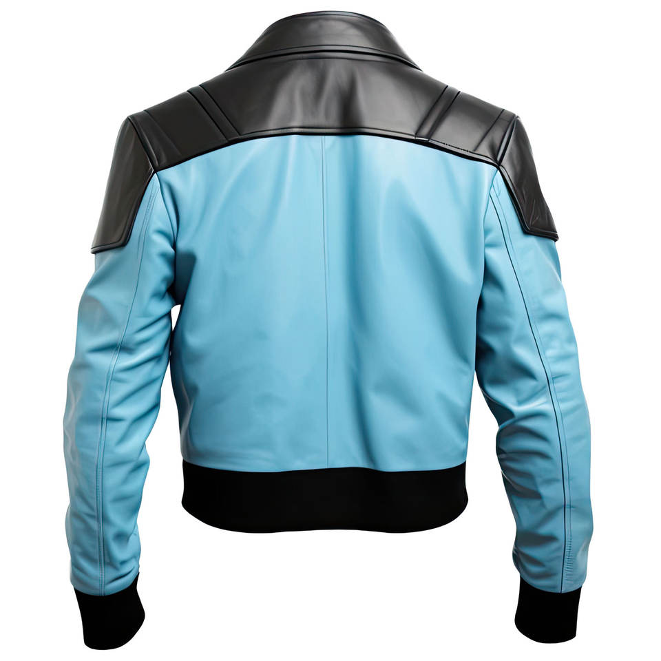 Mens Sky Blue Black Genuine Sheepskin Stand Collar Classy Smooth Biker Outfit Racer Slim Fit Bomber Leather Jacket