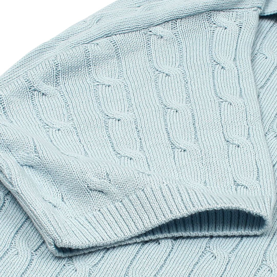 Mens Sky Cable Knit Polo Shirt Premium Cotton Knitwear Short Sleeve Textured Classic Fit Casual Smartwear Apparel