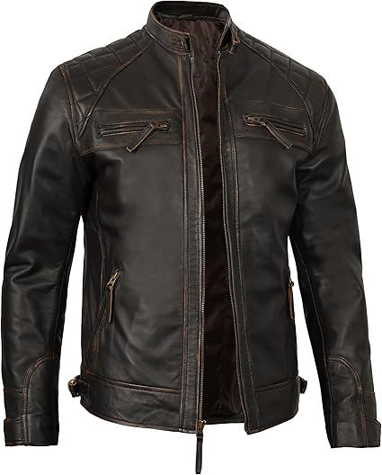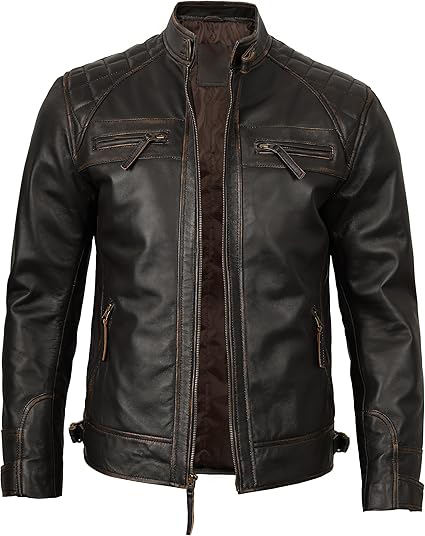 Mens Sleek Black Leather Canvas Winter Jacket with Stand Collar Front Pockets Classic Modern Fit for Everyday Use