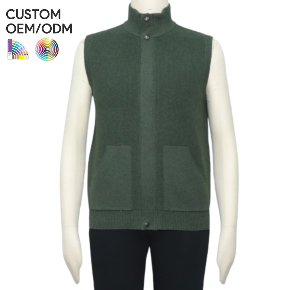 Mens Sleeveless 100% Cotton Anti-Shrink Knit Vest Sweater Winter Round & V-Neck Front Logo Custom OEM & ODM Manufacturer