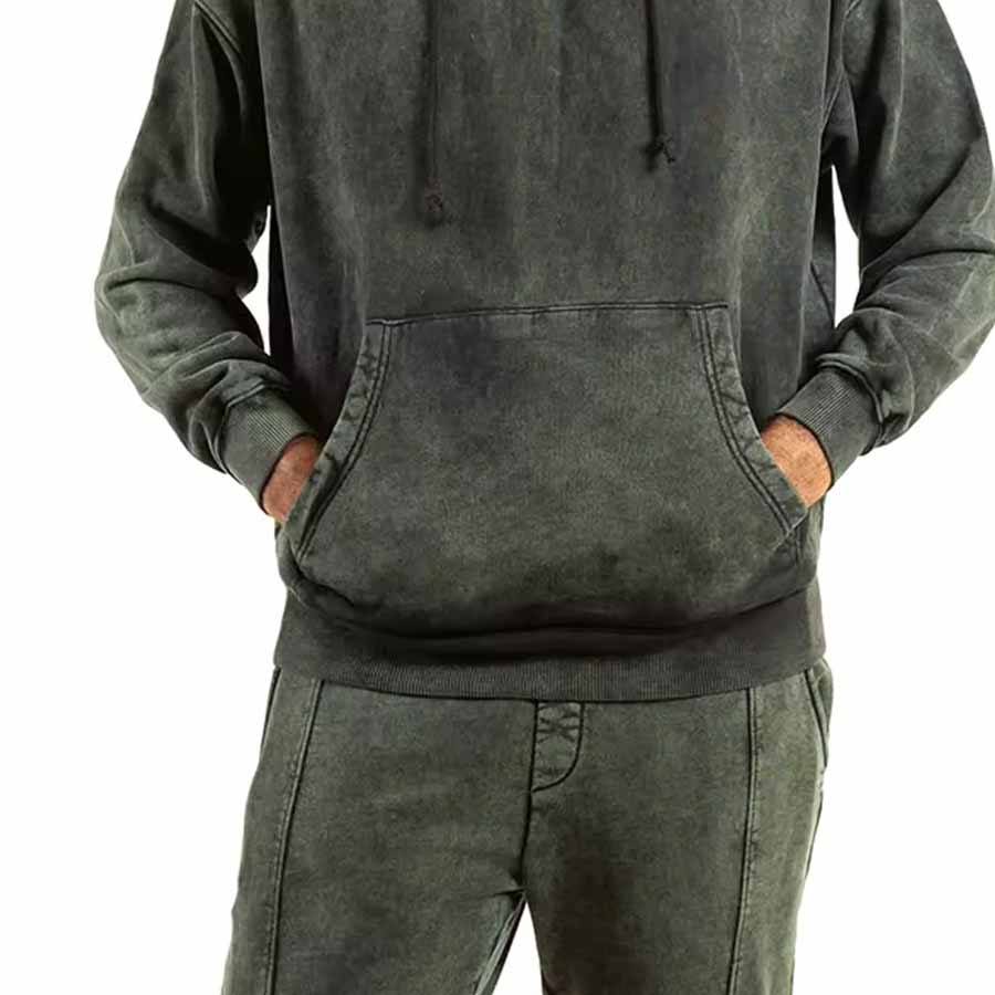 Mens Slim Fit Acid wash Jogger Tracksuit Set with Hoodie and Sweatpants for Casual Streetwear and Fitness Training