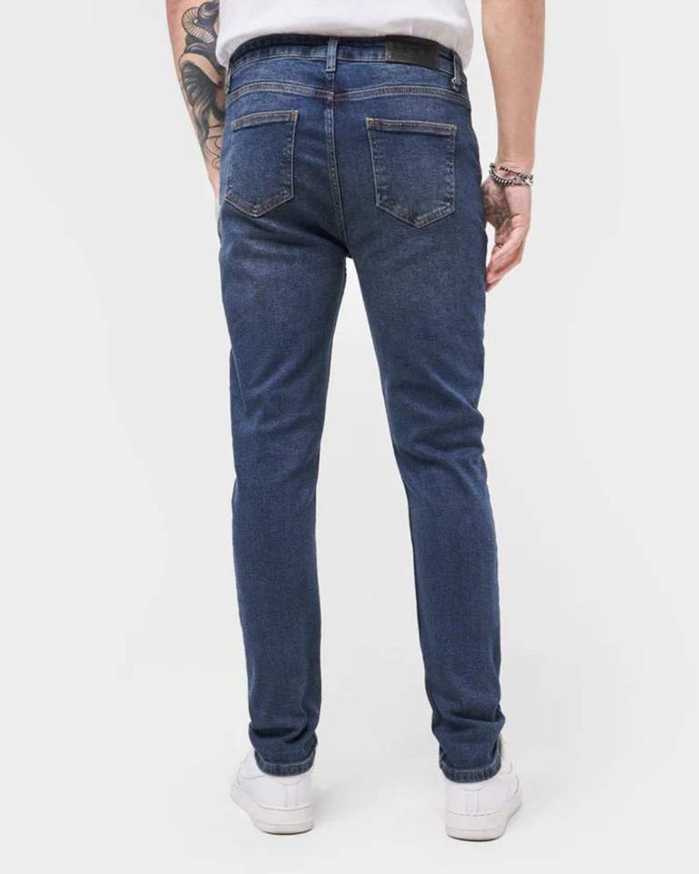Mens Slim Fit Jeans Dark Blue Denim Stretch Mid Waist Clean Look Tapered Leg Smart Casual Versatile Mens Fashion Jean