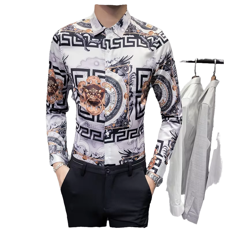 Mens Slim Fit Long Sleeve Fishing Shirt Digital Printing Breathable and Anti Shrink England Style Knitwear for Spring Season