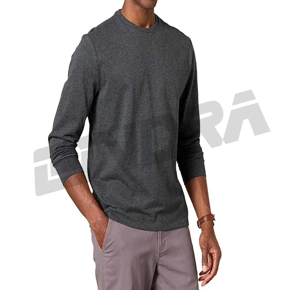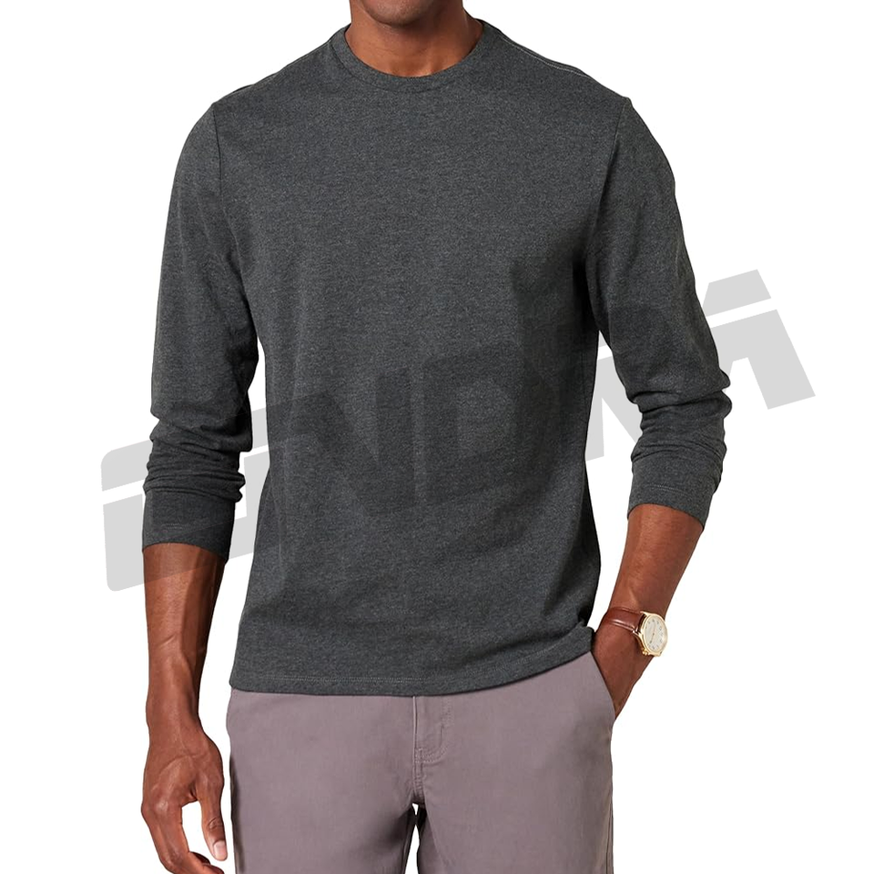 Mens Slim Fit Long Sleeve T Shirt Charcoal Grey Soft Cotton Crew Neck Stretch Fabric Casual Stylish Lightweight Daily Wear Top