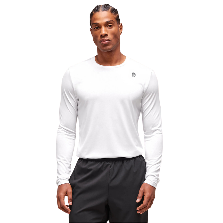 Mens Slim Fit Long Sleeve T Shirt White Stretch Performance Gym Training Athletic Sports Casual Activewear Top