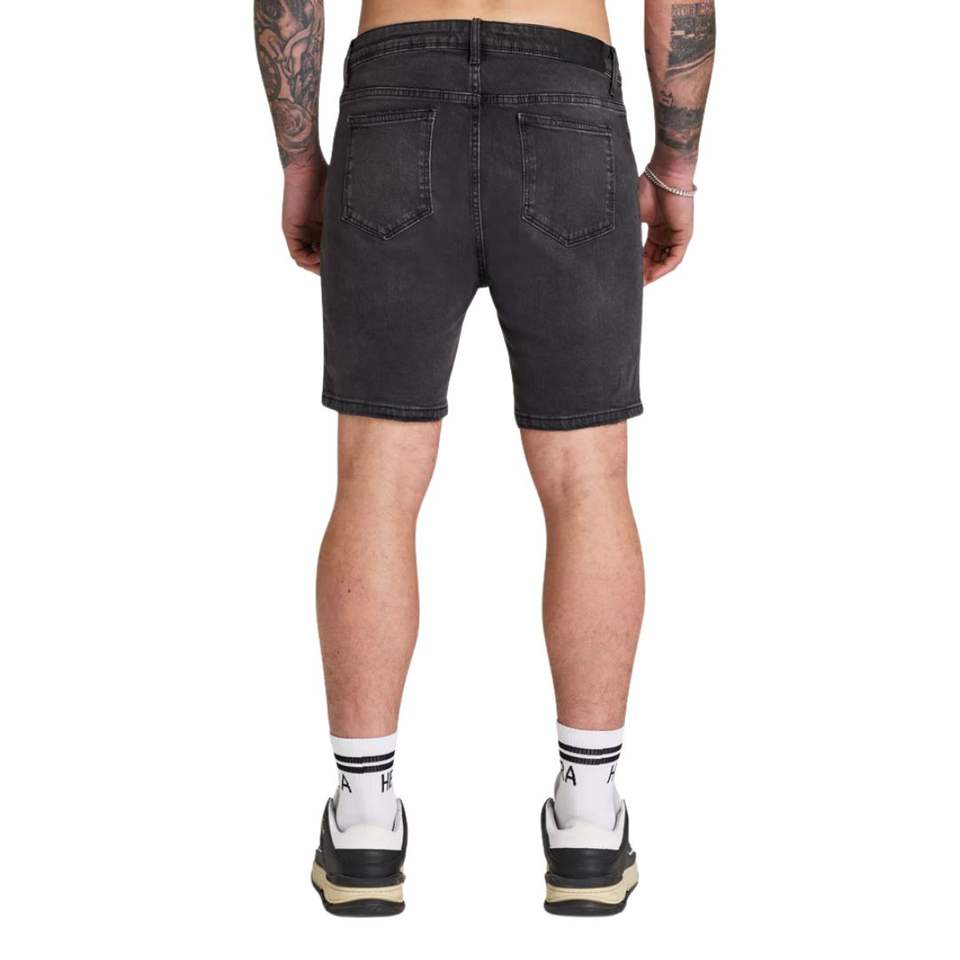 Mens Slim Fit Shorts Grey Denim Tapered Hem Modern Streetwear Comfortable Mid Waist Classic Summer Essential Shorts