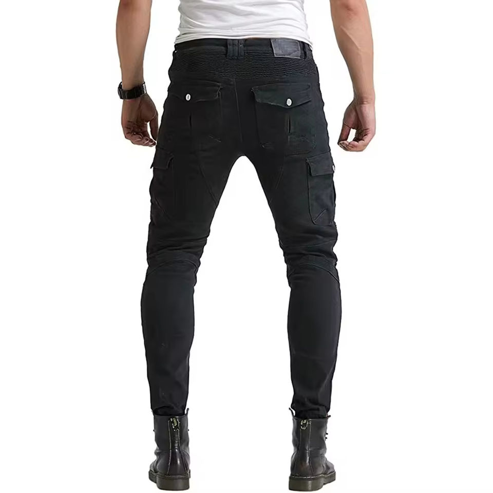 Mens Solid Black Biker Jeans Protective Motorcycle Riding Pants Knee Hip CE Armored Cargo Multi Pocket Denim Trousers Custom OEM