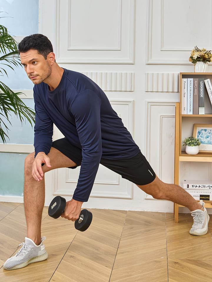 Mens Sporty Long Sleeve Athletic Shirt Knitted 100% Polyester Quick Dry Breathable Anti-Pilling Heat-Transfer Printed Custom