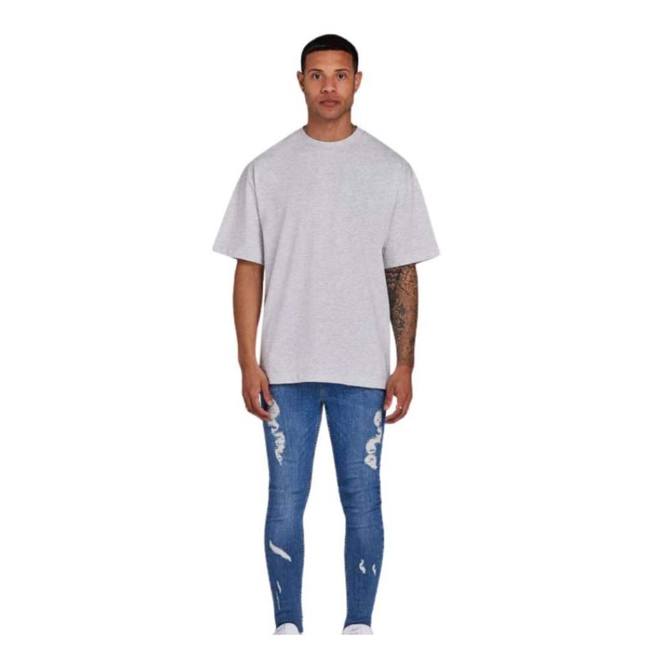 Mens Spray-On Ripped Jeans Mid Blue High Stretch Tight Fit Ripped Skinny Look Everyday Rugged Streetwear Denim Jeans