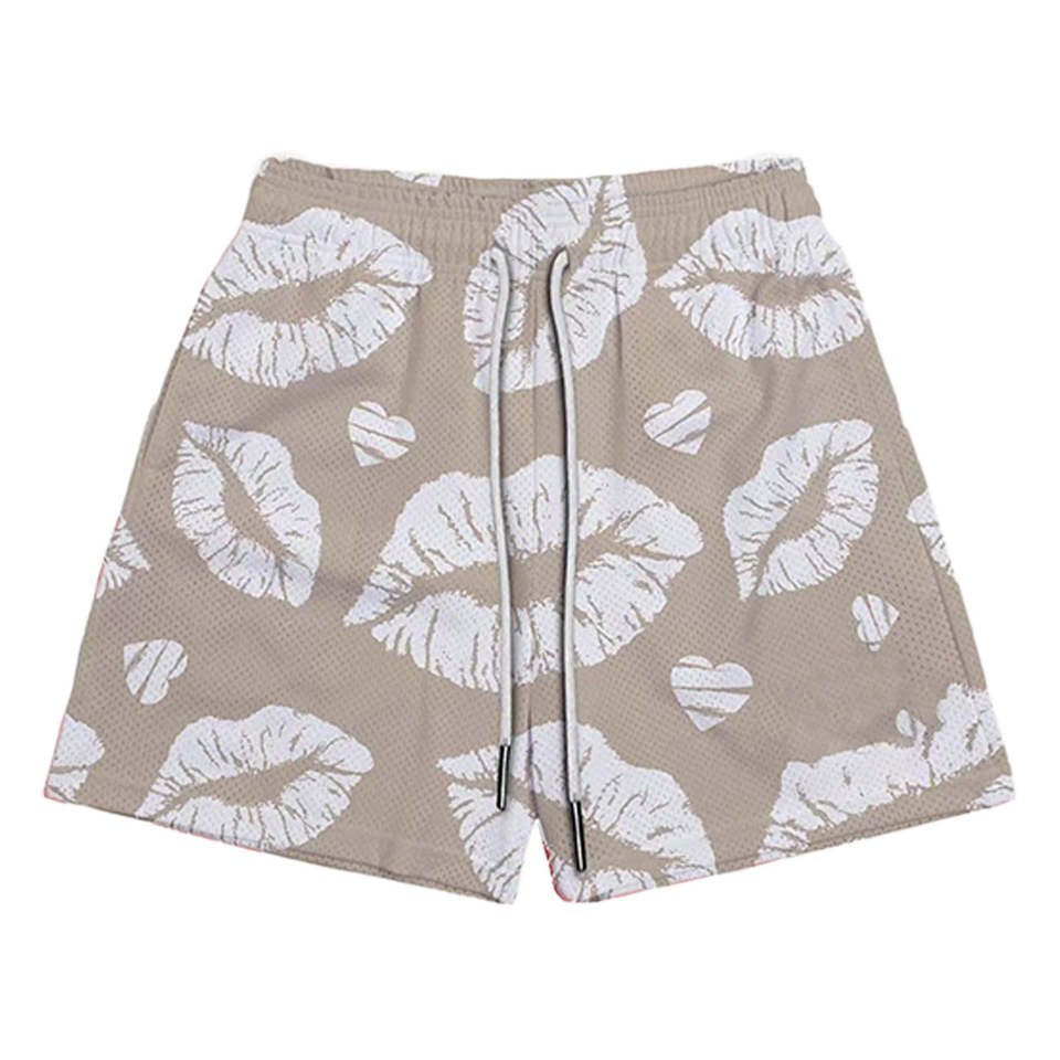 Custom Men's Summer Heavy Basketball Shorts Breathable Polyester Mesh 5 Inch Printed Double Layer Elastic Mid Knitted Pockets