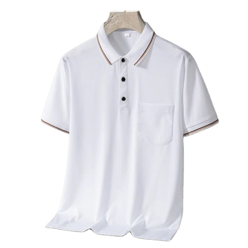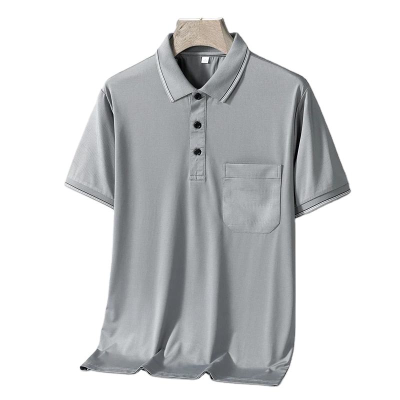 Mens T-Shirt Short Sleeve Turn Collar Business Anti-Wrinkle Anti-Pilling Breathable Eco-Friendly Solid Pocket Design High Street