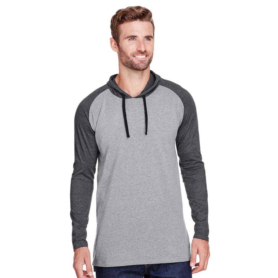 Mens T Shirts Hooded Raglan Long Sleeve Fine Lightweight Jersey Dep Grey Sweatshirts