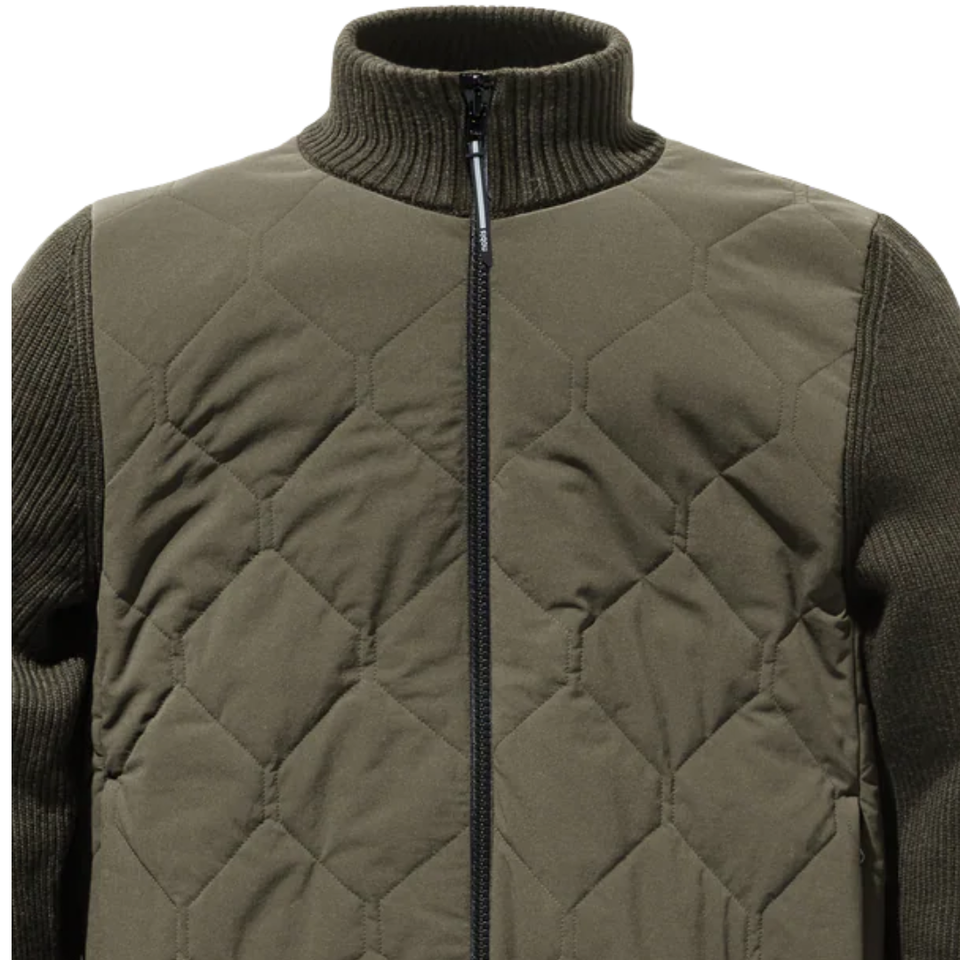 Mens Tailored Hybrid Zip Sweater Knit Body Quilted Panel Smart Casual Outerwear Long Sleeve Jacket