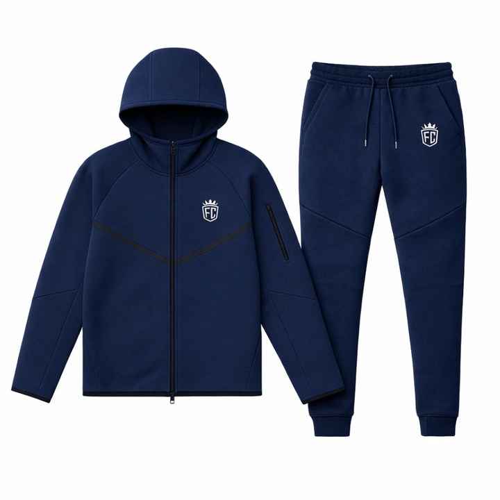 Mens Tech Fleece Windrunner Full-Zip Hooded Jacket and Joggers Tracksuit Sweatsuit Navy Blue Athletic Training Activewear Set