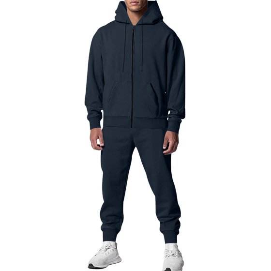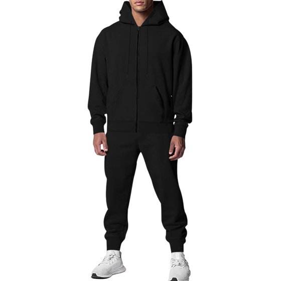 Mens Track Suits Fleece Lined Sweatsuit 2 Piece Sets Casual Full Zip Hoodies Jackets and Jogging Pants with Pockets Fall