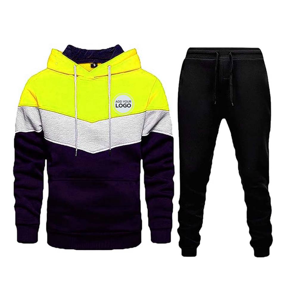 Mens Winter Streetwear Tracksuit Set Jogging Bottom Pullover Printed Fleece Hoodie Solid Grey Tops