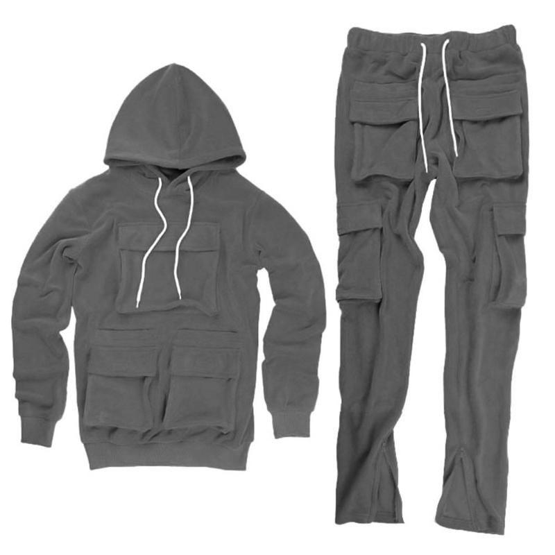 Mens Tracksuits Men Thick Pockets Hoodie Sweatshirt 2 Piece Set Cargo Pants Tracksuit Selling Customized