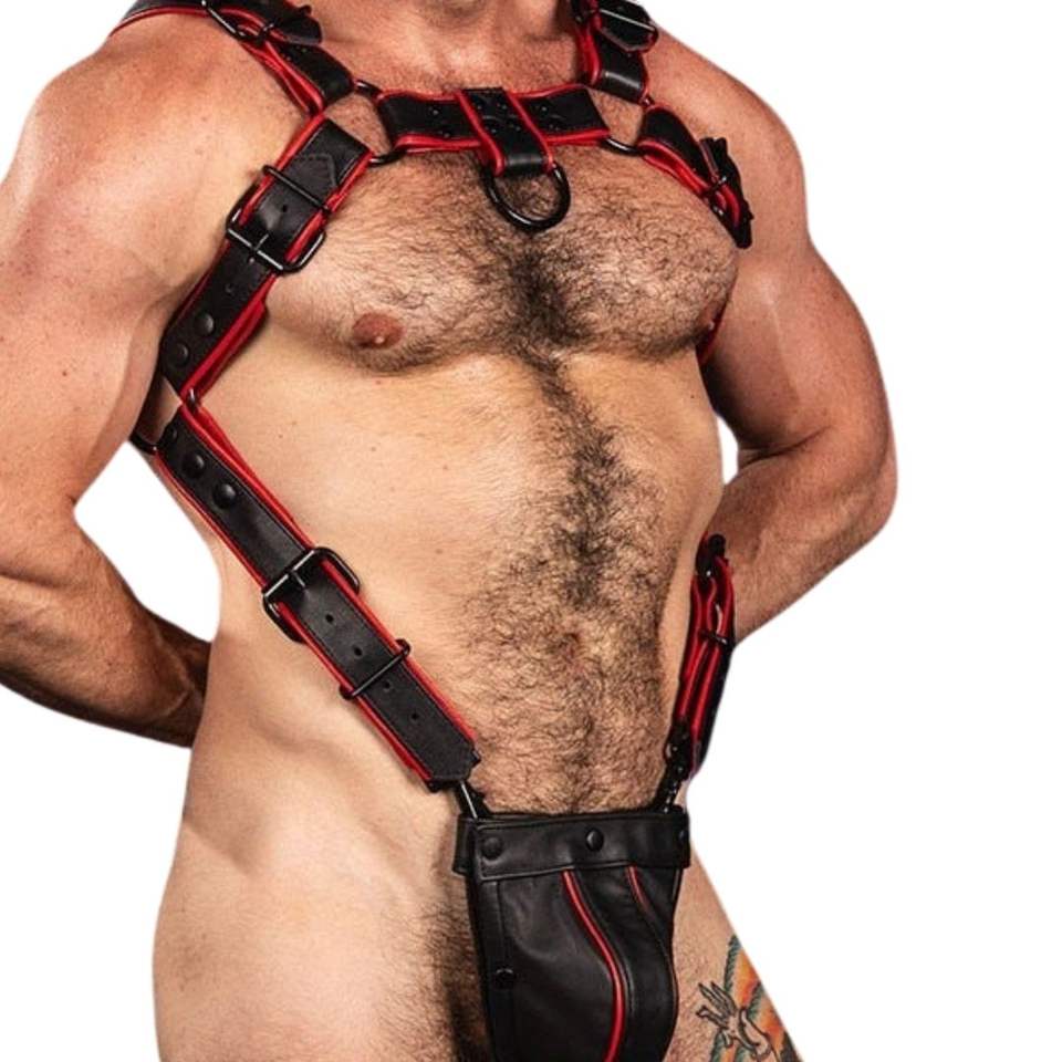 Mens Trojan 2.0 Leather Body Harness Black Adjustable Straps Premium Leather Club Wear