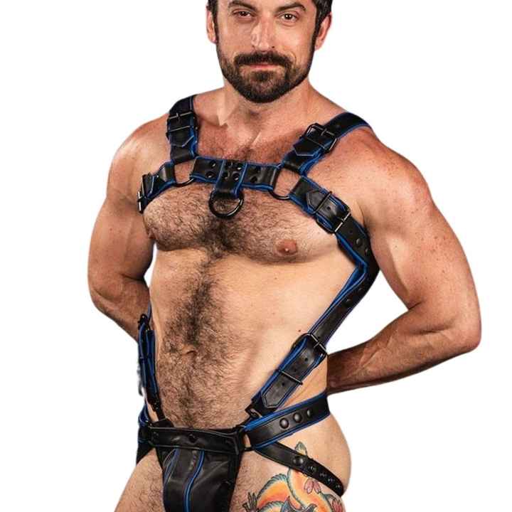 Mens Trojan 2.0 Leather Body Harness Silver Adjustable Straps Premium Leather Club Wear