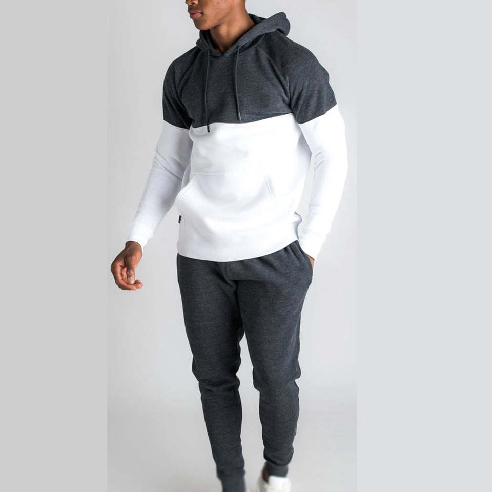 Mens Two Tone Hoodie Tracksuit White and Dark Gray Casual Jogger Set Fashion Sportswear for Gym and Streetwear