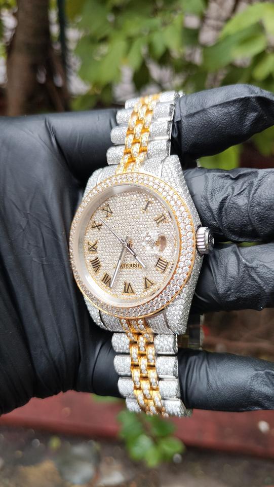 Mens Ultra Luxury Mechanical Automatic Moment Watch with Moissanite Diamond Bezel & Dial Stainless Steel 41MM Business Party