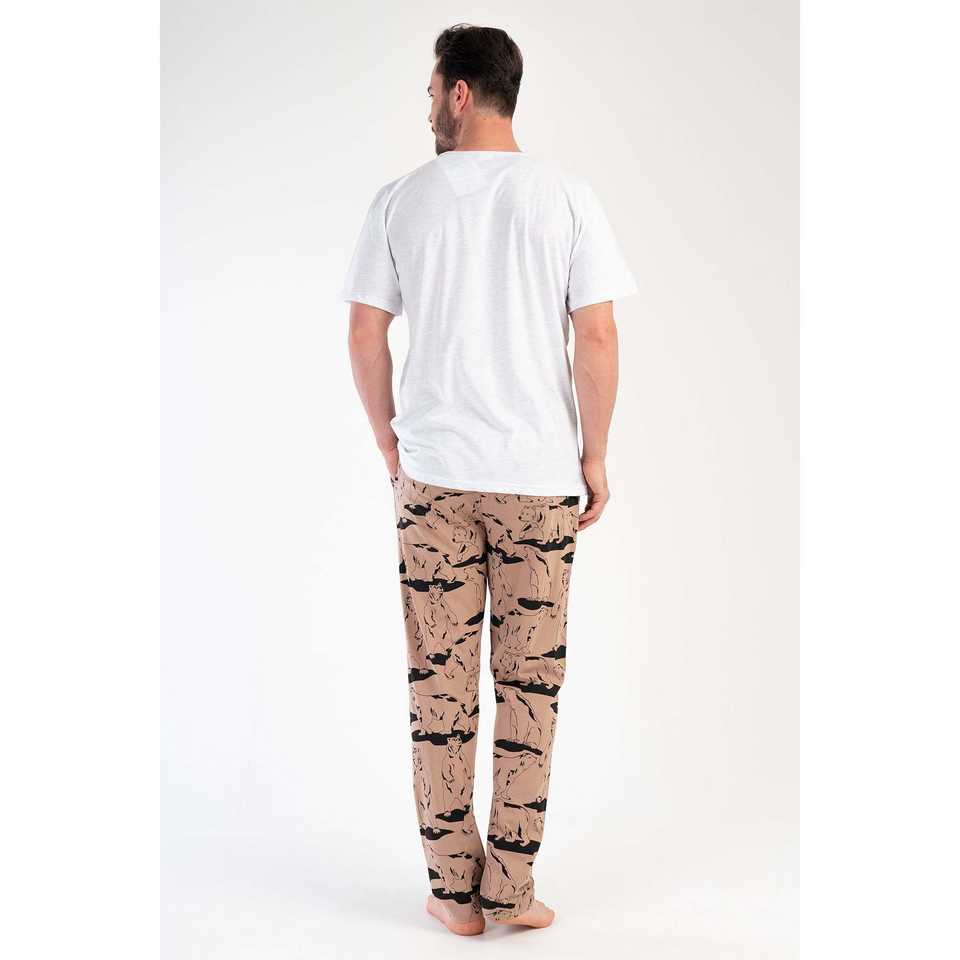 Mens V-Neck Short-Sleeve Silk and Cotton Pajama Set Home Wear Robe with Custom Logo Print Casual Style XL Size