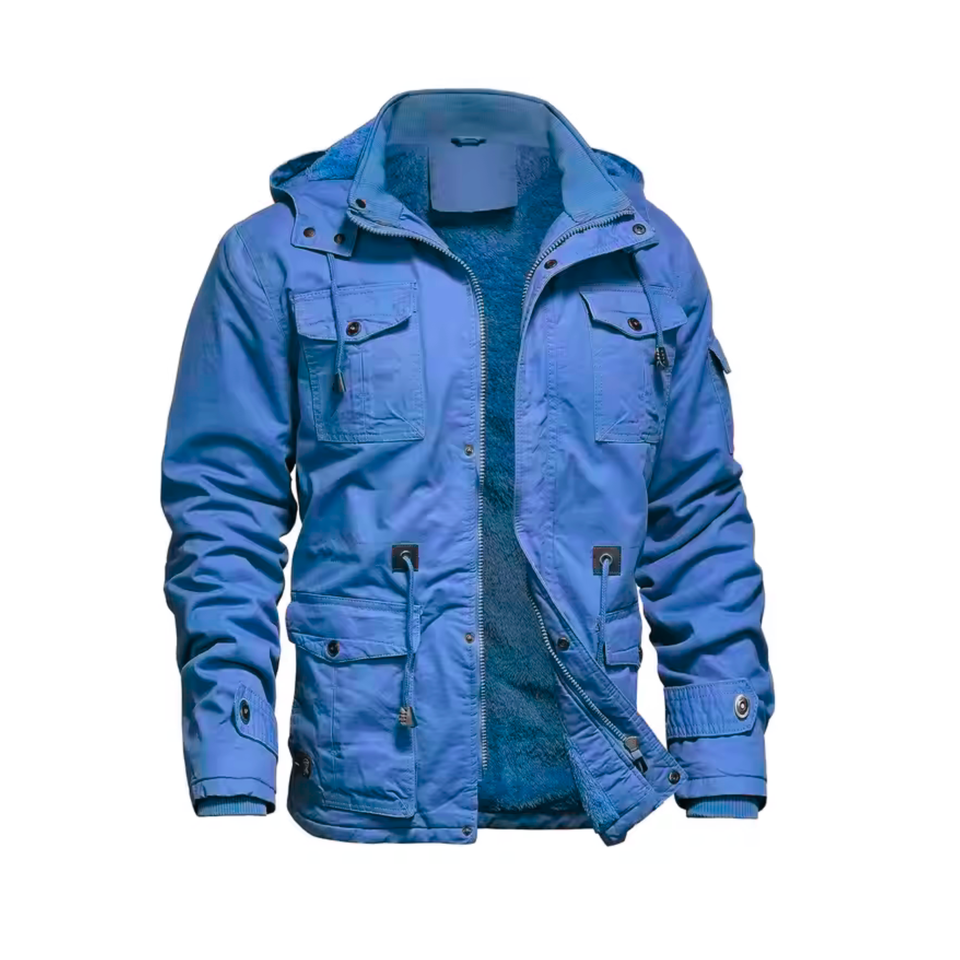 Mens Vintage Winter Jacket 100% Cotton Outerwear Detachable Hood Fleece Lining Stand Collar Zipper Closure OEM Service Available