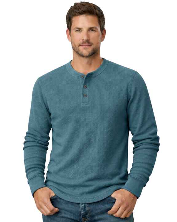Mens Waffle Henley Long Sleeve Thermal T Shirt Teal Blue Casual Button Neck Winter Wear Top Cotton Slim Fit Breathable Fabric