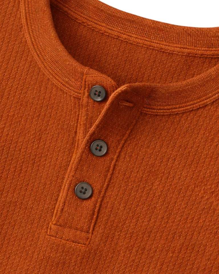 Mens Waffle Henley Long Sleeve Thermal T Shirt Rust Orange Casual Button Neck Winter Wear Top Cotton Slim Fit Breathable Fabric