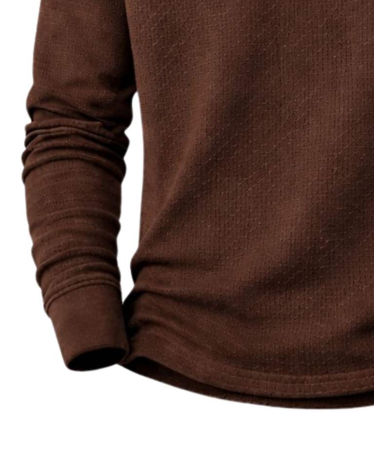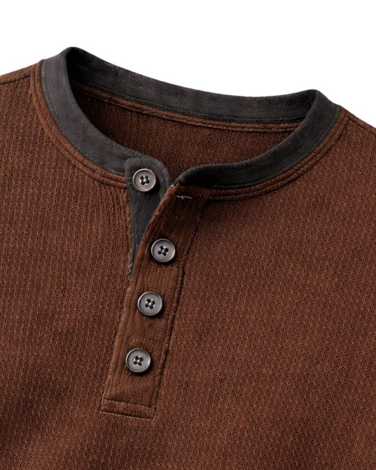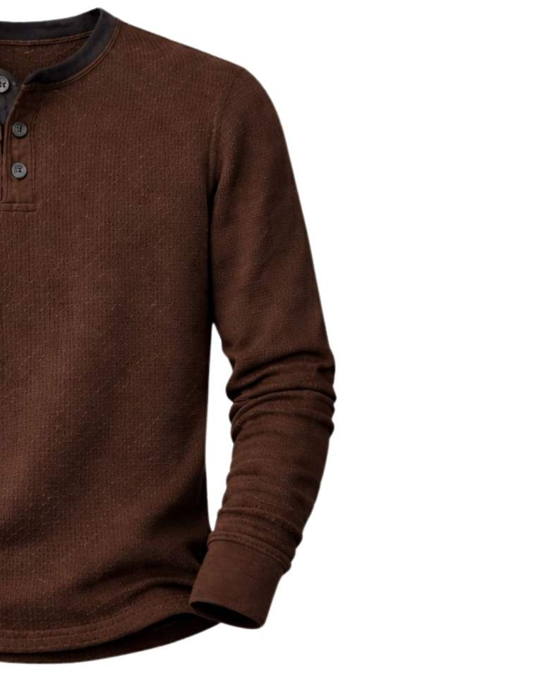 Mens Waffle Henley Long Sleeve Thermal T Shirt Dark Brown Casual Button Neck Winter Wear Top Cotton Slim Fit Breathable Fabric
