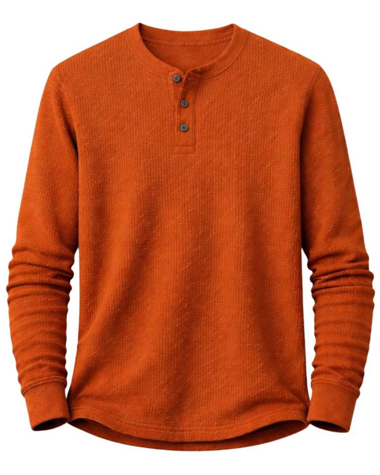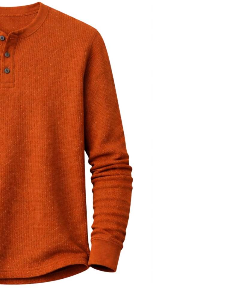 Mens Waffle Henley Long Sleeve Thermal T Shirt Burnt Orange Casual Button Neck Winter Wear Top Cotton Slim Fit Breathable Fabric