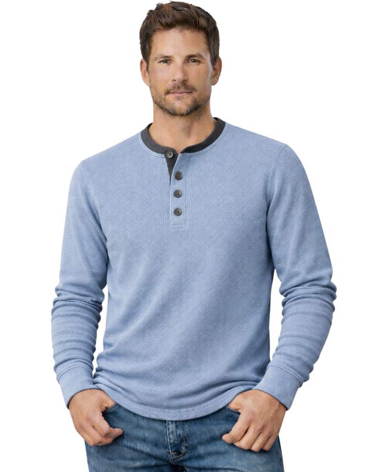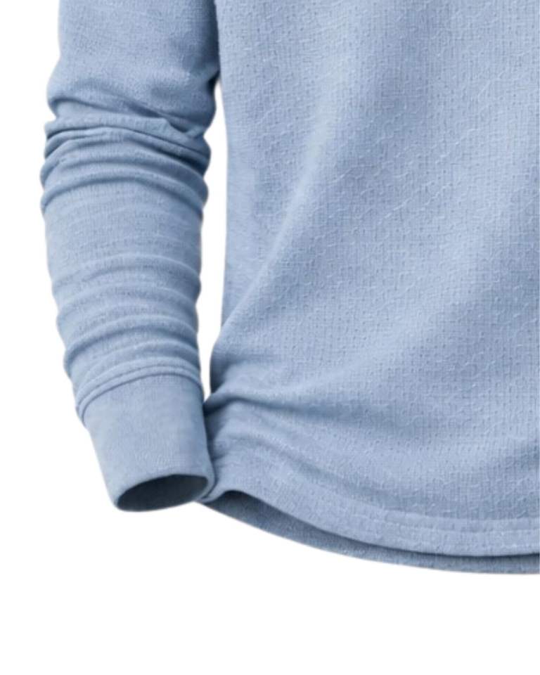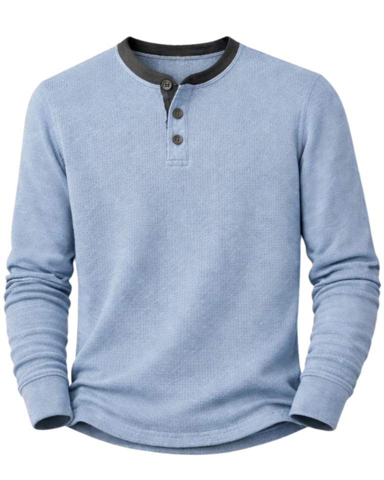Mens Waffle Henley Long Sleeve Thermal T Shirt Sky Blue Casual Button Neck Winter Wear Top Cotton Slim Fit Breathable Fabric