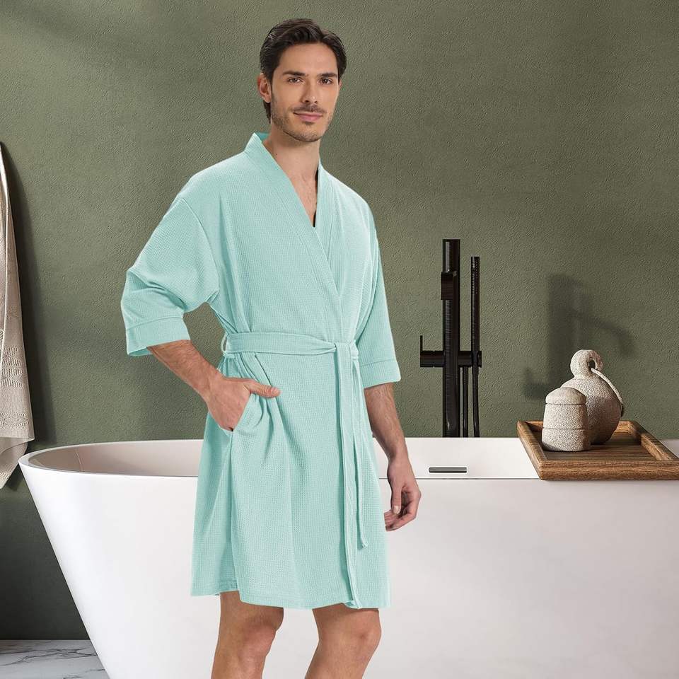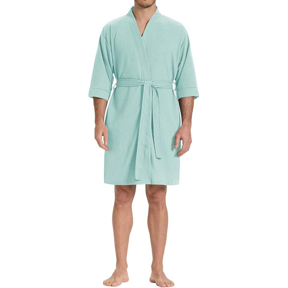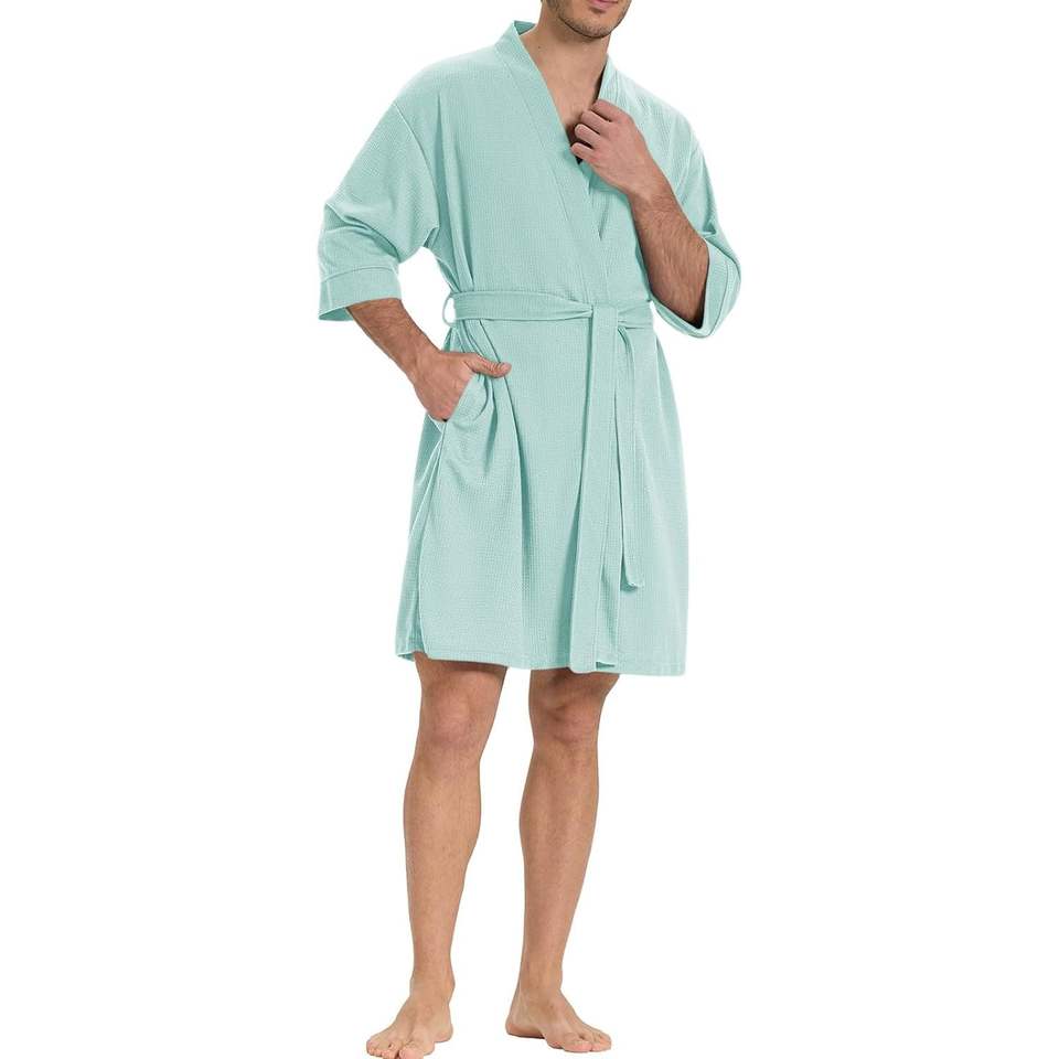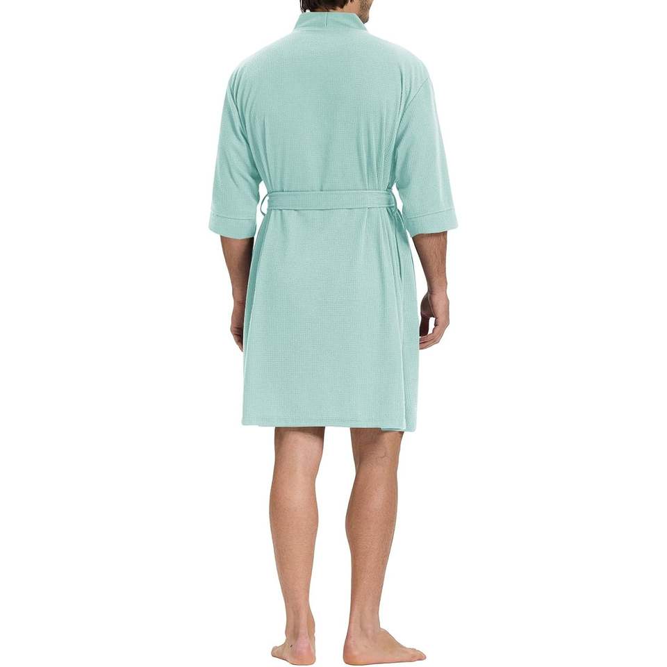 Custom Mens Waffle Knit Lightweight Robe Short Sleeve Kimono Loungewear Summer Spa Robes Wear Bamboo Sleepwear Mens Clothing VN